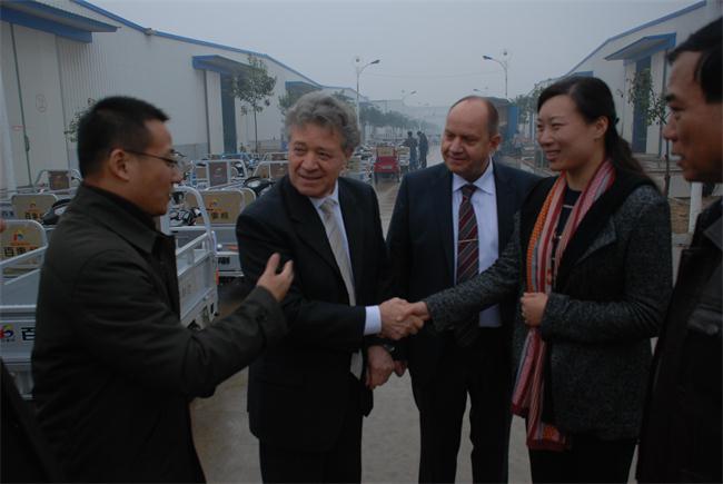 考察中,县长郭学习就丰县电动车产业的发展现状、整体规划、未来发展以及莫兹、法布里关心的问题做了详细介绍。莫兹一行在实地考察丰县电动车