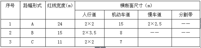 丰县电动车产业园规划主要道路断面形式一览表(单位:米)